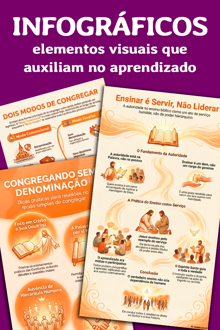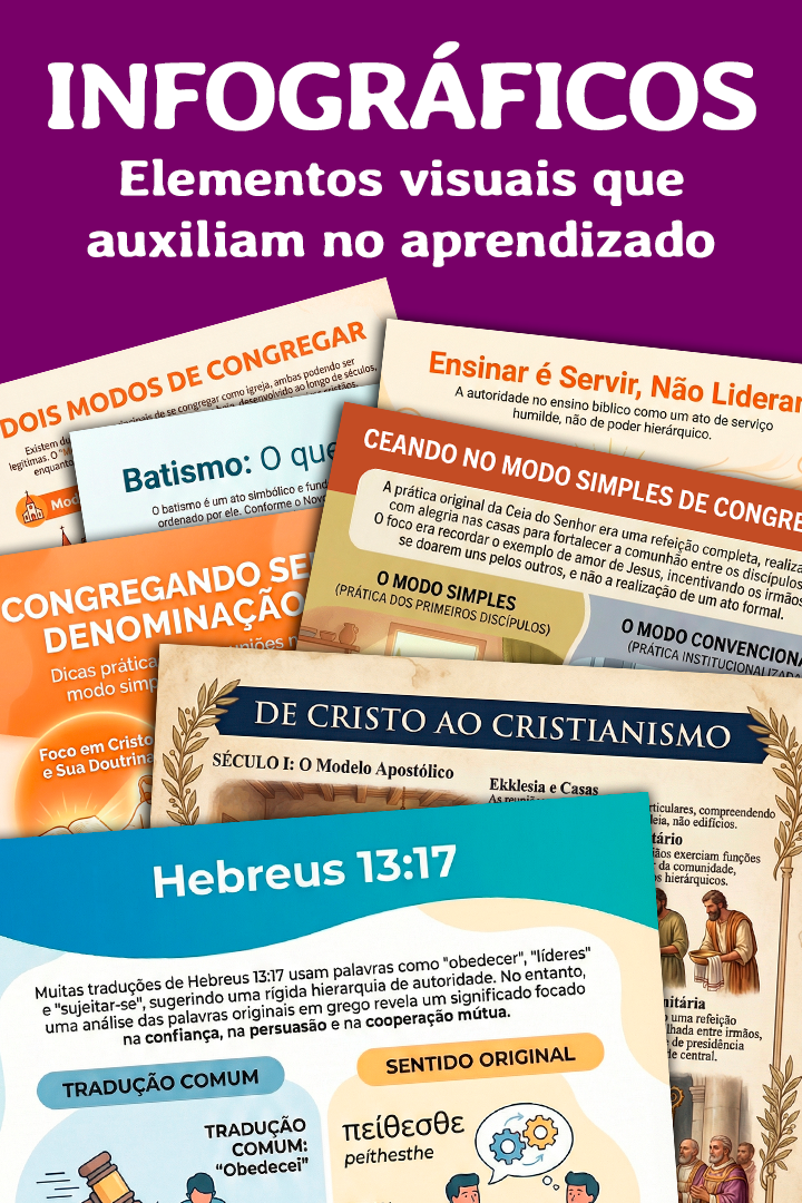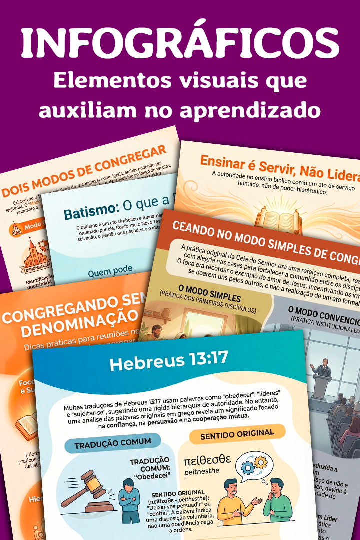 Compartilhamos orientações bíblicas e recursos gratuitos para quem quer congregar com simplicidade, entre poucos irmãos, sem fronteira denominacional, mas com maior edificação em Cristo, priorizando a prática dos seus ensinamentos e visando apenas a glória de Deus.